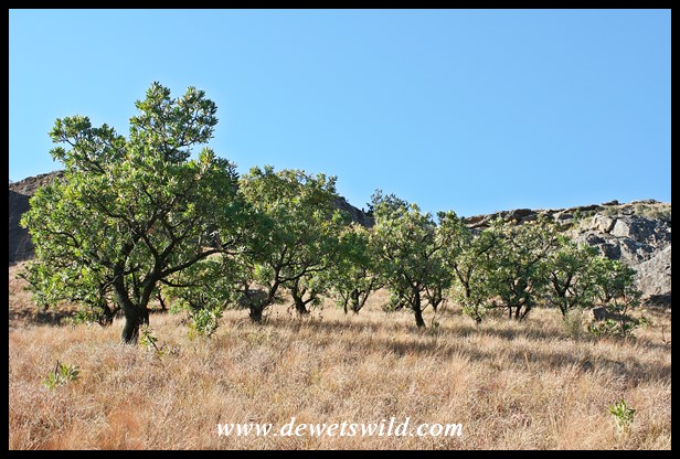 Protea_GiantsCastle_28Jun2019 (23) ← Previous Next → Common Sugarbush dot a hillside at Giant’s Castle