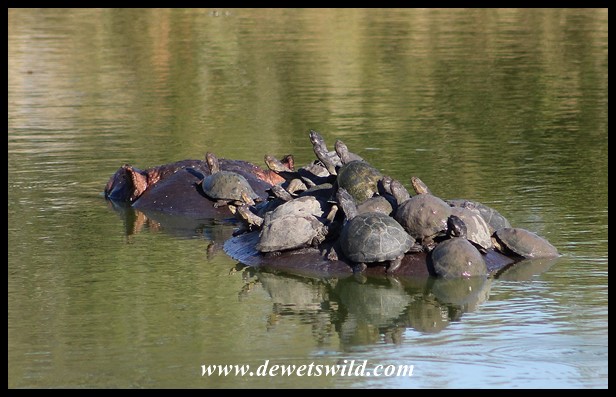 Hippo_Kruger_31May2019 (72) Hippo becoming a temporary island for Marsh and Serrated Hinged Terrapins
