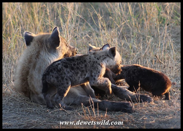 SpottedHyena_Kruger_01Jun2019 (5) ← Previous Next → Running around your aunt while your smaller cousins are trying to suckle is great fun apparently in Spotted Hyena families