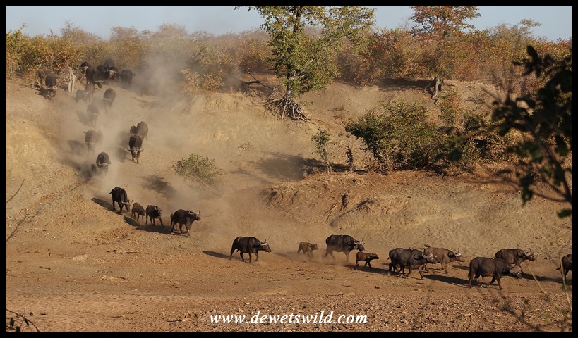 Buffalo herd rushing to the water