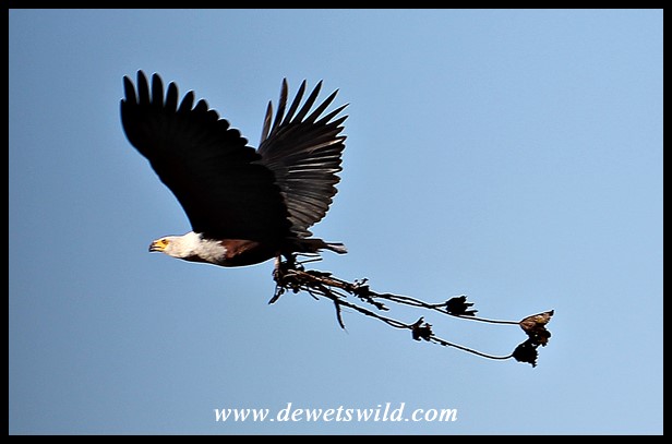 African Fish Eagle in flight with nesting material
