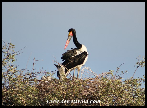 Saddle-billed Stork with nestlings