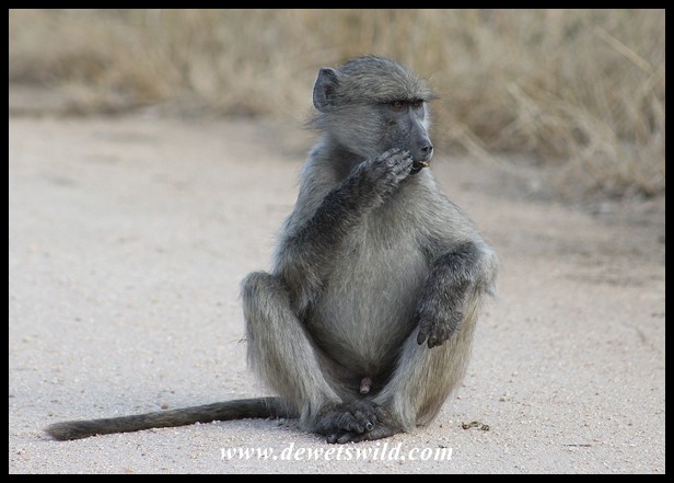 Baboon youngster thinking of mischief