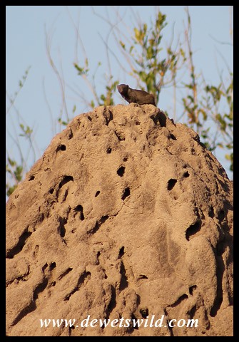 DwarfMongoose_Kruger_18Jun2019 (24) ← Previous Next → Dwarf Mongoose standing sentry atop a termite mound