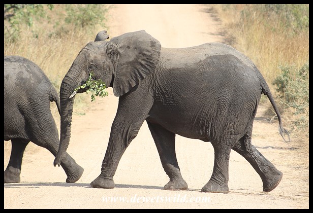 Elephant_Kruger_30May2019 (16) ← Previous Next → Elephant youngster enjoying a snack while crossing the road