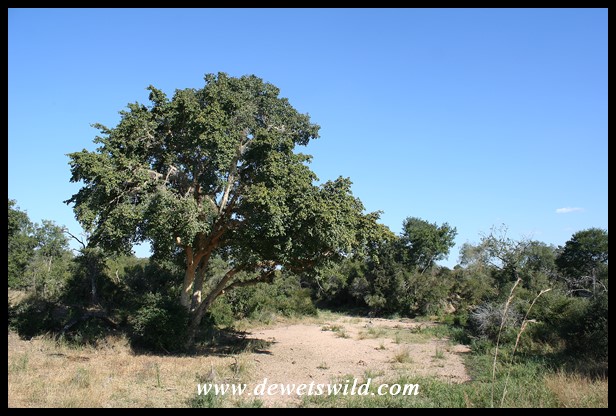 Scenery_KNP_31May-2Jun2019 (13) ← Previous Next → A Sycomore Fig Tree in a dry stream bed near Phabeni Gate
