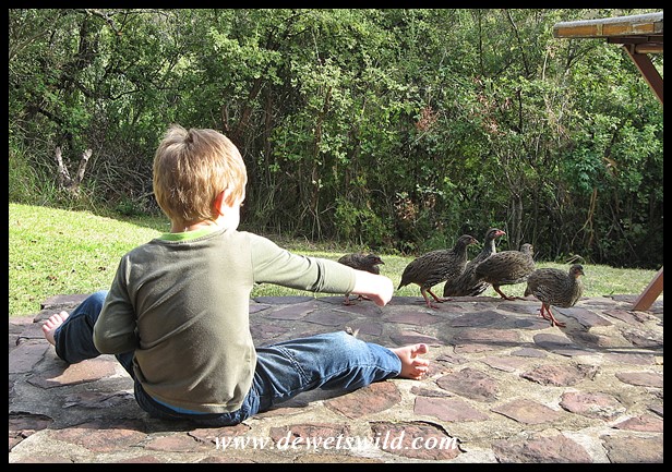2014-04_GiantsCastle ← Previous Next → 4 Years old: April 2014. Calling francolin chicks to come closer at Giant’s Castle.