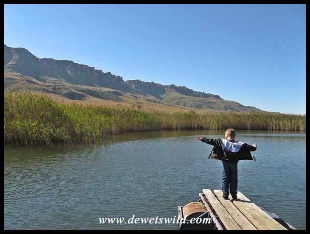 2015-05_Kamberg ← Previous Next → 5 Years old: May 2015. Titanic impression on a trout dam at Kamberg in the uKhahlamba Drakensberg Park.