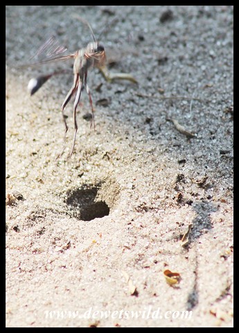 Thread-waisted Wasp flying off to capture her prey