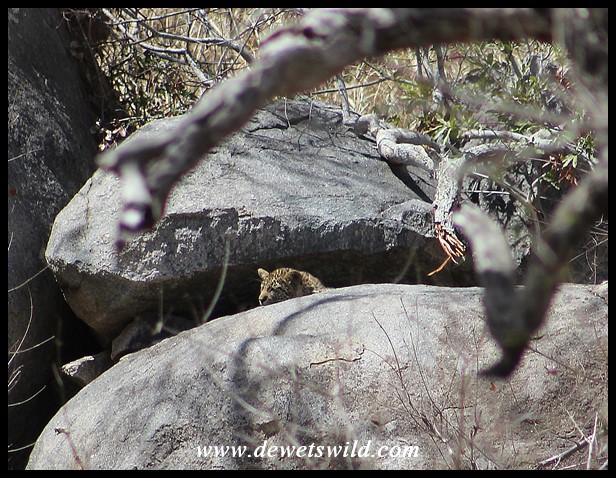 Leopard cub in a rocky outcrop between Tshokwane and Skukuza