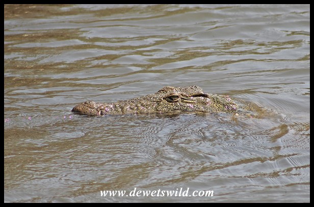 Nile Crocodile cruising up to a rapid in the Sabie River