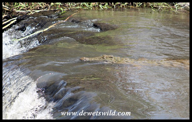 Nile Crocodile cruising up to a rapid in the Sabie River