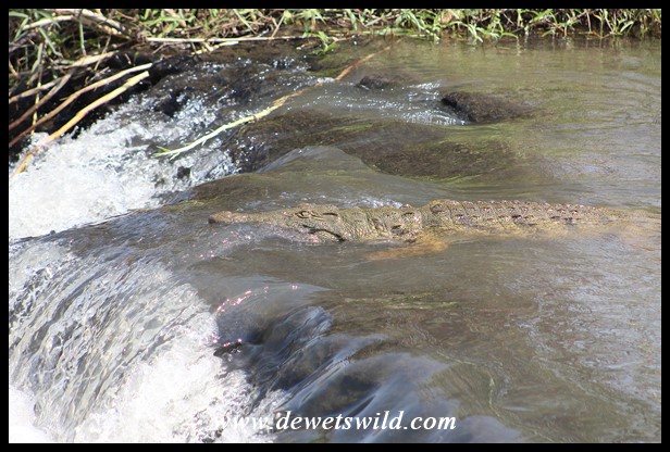 Nile Crocodile cruising up to a rapid in the Sabie River