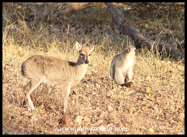 Grey Duiker and Vervet Monkey