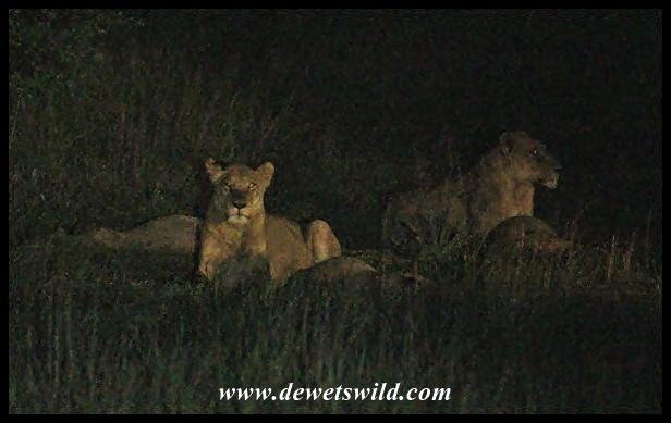 Lions in the dark, just outside camp