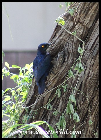 Cape Glossy Starling at its nest