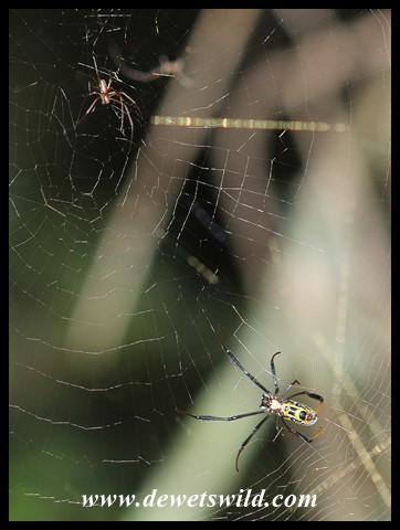 RoyalNatal_March2020_GoldenOrb-webSpider (3) ← Previous Next → Golden Orb-web Spider – male top left, female bottom right