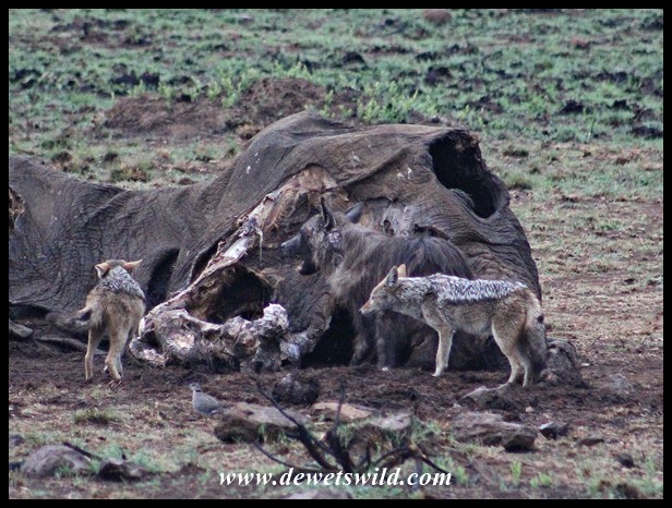 BrownHyena+BlackbackedJackal_Pilanesberg_07Oct2020 (89) ← Previous Next → Brown Hyena and Black-backed Jackals at Mavuso’s carcass
