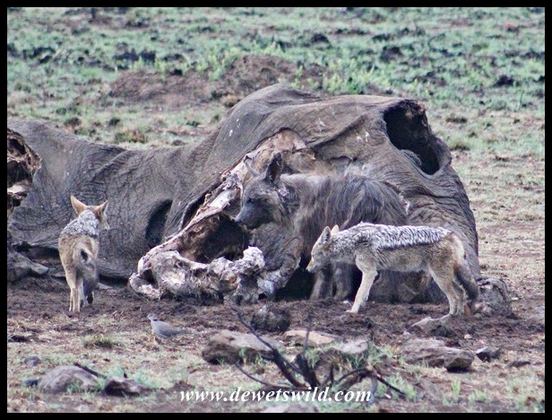 BrownHyena+BlackbackedJackal_Pilanesberg_07Oct2020 (90) ← Previous Next → Brown Hyena and Black-backed Jackals at Mavuso’s carcass