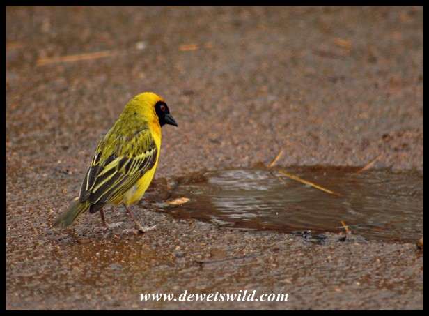 SouthernMaskedWeaver_Pilanesberg_07Oct2020 (146) ← Previous Next → Southern Masked Weaver enjoying a muddy puddle at Mankwe Dam