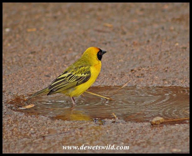 SouthernMaskedWeaver_Pilanesberg_07Oct2020 (147) ← Previous Next → Southern Masked Weaver enjoying a muddy puddle at Mankwe Dam