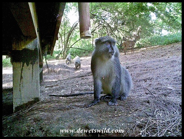 SamangoMonkey_CapeVidal_Jan21_Trailcam (24) ← Previous Next → Samango Monkeys with a bushbuck in the background