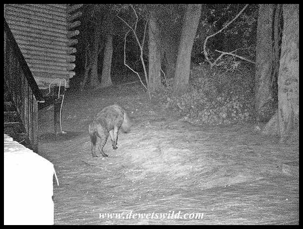 SpottedHyena_CapeVidal_Jan21_Trailcam (131) ← Previous Next → Spotted Hyena outside our cabin in the dark of night