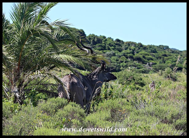 Kudu hiding in the shade of a small Wild Date Palm