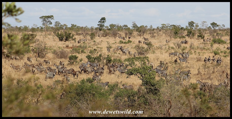KNP_16Aug21_DdW (19) ← Previous Next → Huge herds of plains zebra congregating along the Mnondozi stream