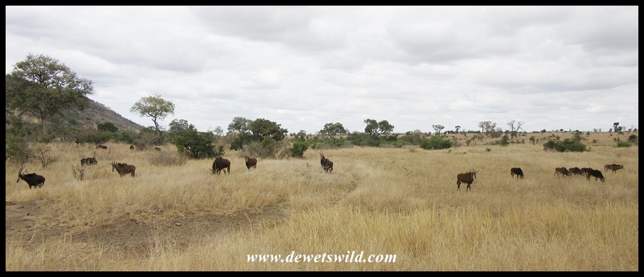 KNP_16Aug21_DdW (34) ← Previous Next → Herd of Sable Antelope on the plains between Munstshe Mountain and the Mnondozi stream