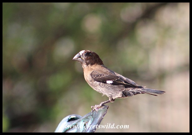 Doornkop_Okt2021_D (49) ← Previous Next → Thick-billed weaver taking his seat on the patio furniture at Doornkop