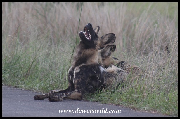 PaintedWolves_KNP_14Dec2021_Joubert (1) Next → Painted Wolves, or African Wild Dogs, on the road between Orpen and Satara