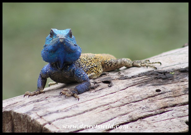 Male Tree Agama in breeding colours in Satara Rest Camp