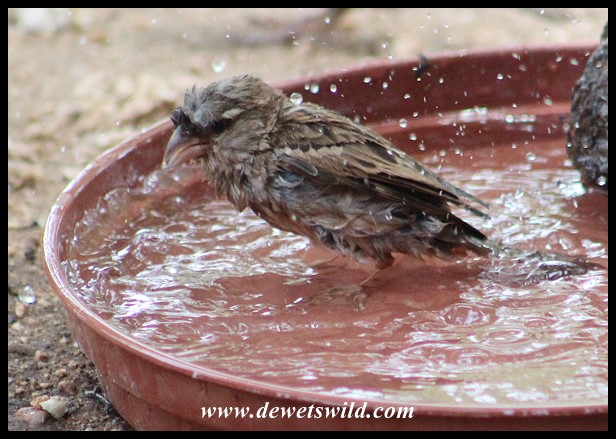 Bathing House Sparrow (photo by Marilize)