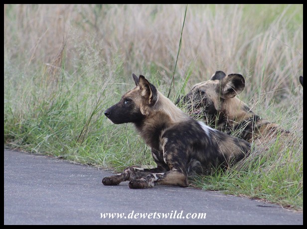 WildDogs_KNP_14Dec21_Dries (29) ← Previous Next → Painted Wolves, or African Wild Dogs, on the road between Orpen and Satara