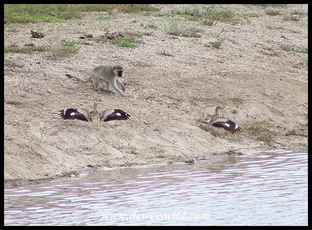 Vervets-v-Dikkops_KNP_19Dec2021_Dries (48) ← Previous Next → Standoff between Vervet Monkeys and Water Dikkoppe (Water Thick-knees) at Mazithi Dam