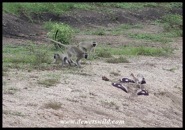 Vervets-v-Dikkops_KNP_19Dec2021_Dries (50) ← Previous Next → Standoff between Vervet Monkeys and Water Dikkoppe (Water Thick-knees) at Mazithi Dam