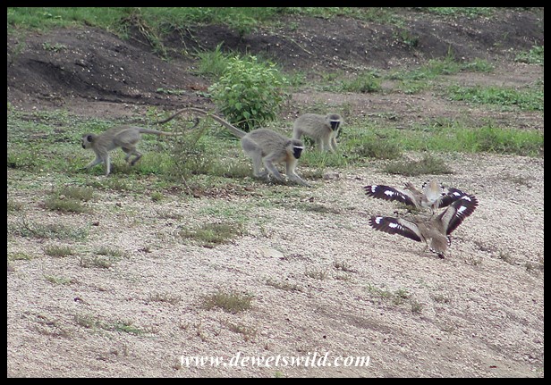 Vervets-v-Dikkops_KNP_19Dec2021_Dries (51) ← Previous Next → Standoff between Vervet Monkeys and Water Dikkoppe (Water Thick-knees) at Mazithi Dam