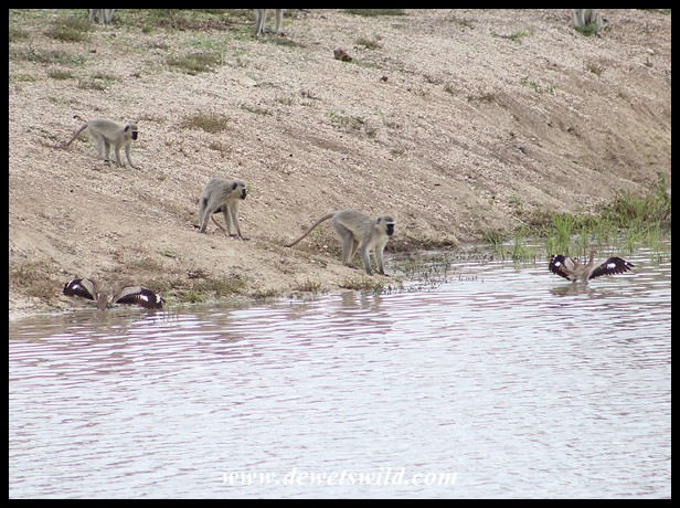 Vervets-v-Dikkops_KNP_19Dec2021_Dries (61) ← Previous Next → Standoff between Vervet Monkeys and Water Dikkoppe (Water Thick-knees) at Mazithi Dam