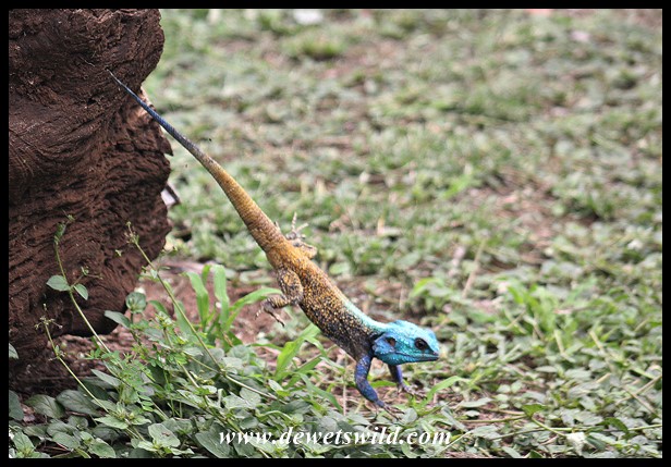 TreeAgama_KNP_21Dec2021_Joubert (10) ← Previous Next → Male Tree Agama in breeding colours in Satara Rest Camp (photo by Joubert)