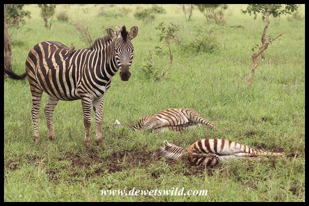 Zebra_KNP_31Dec2021_Dries (15) ← Previous Next → Plains Zebras often lie on their sides to sleep while others of the herd keep watch