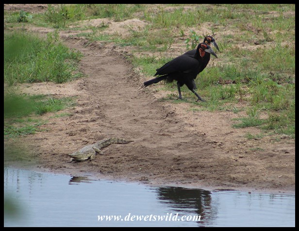 GroundHornbill & Crocodile_KNP_29Dec2021_Dries (33) ← Previous Next → Ground Hornbills striding past a young Nile Crocodile