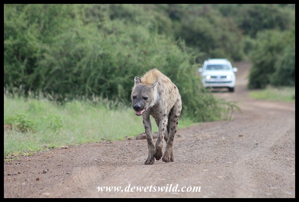 SpottedHyena_KNP_20Dec2021_Dries (26) ← Previous Next → Spotted Hyena walking along the road near Balule