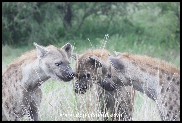 SpottedHyenas_KNP_17Dec21_Joubert (6) ← Previous Next → Excited Spotted Hyenas patrolling along the Olifants River (photo by Joubert)