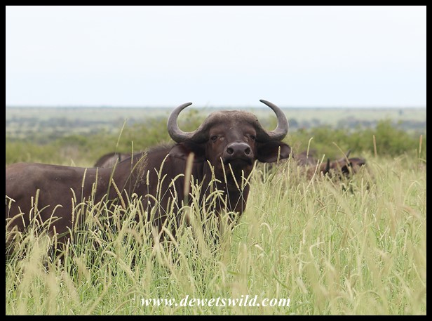 Buffalo_KNP_24Dec2021_Dries (30) ← Previous Next → Young Buffalo bull peering down his nose over the long grass