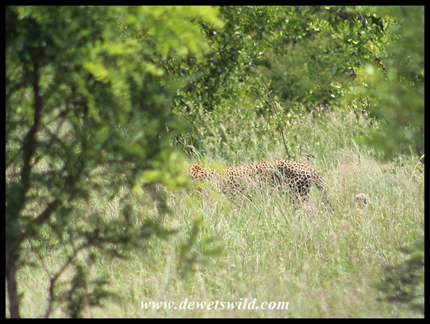 Leopard_KNP_23Dec2021_Dries (9) ← Previous Next → Leopard walking through long grass between Orpen and Satara