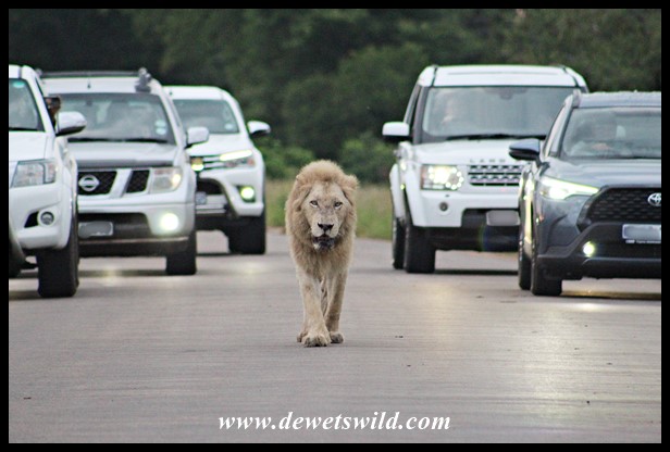 Lions_KNP_01Jan2022_Dries (6) ← Previous Next → Satara’s White Lion walking up to us, entourage in tow