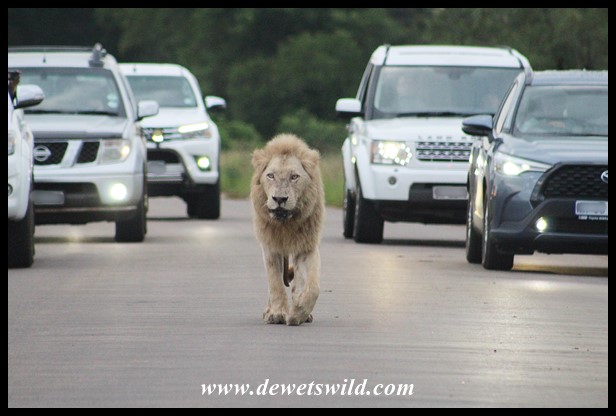 Lions_KNP_01Jan2022_Dries (7) ← Previous Next → Satara’s White Lion walking up to us, entourage in tow