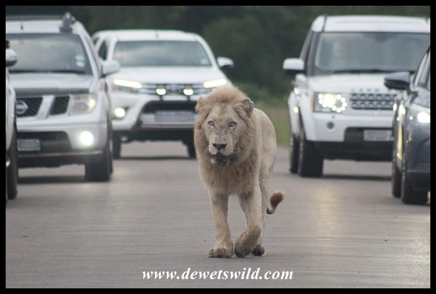 Lions_KNP_01Jan2022_Joubert (4) ← Previous Next → Satara’s White Lion walking up to us, entourage in tow