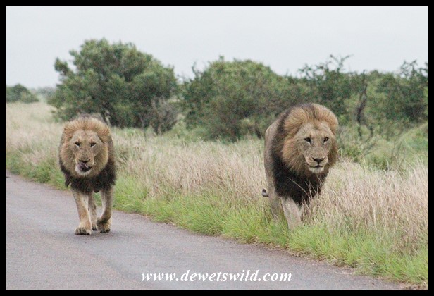 Big male lions on the H1-4 north of Satara